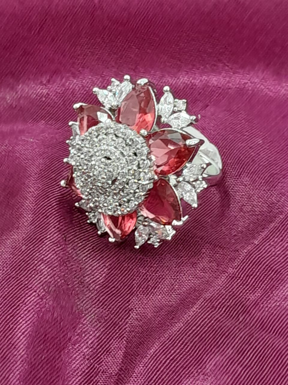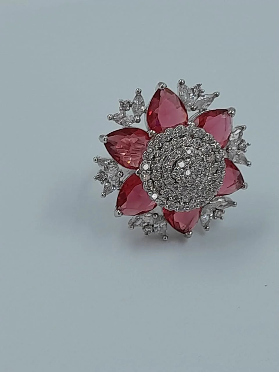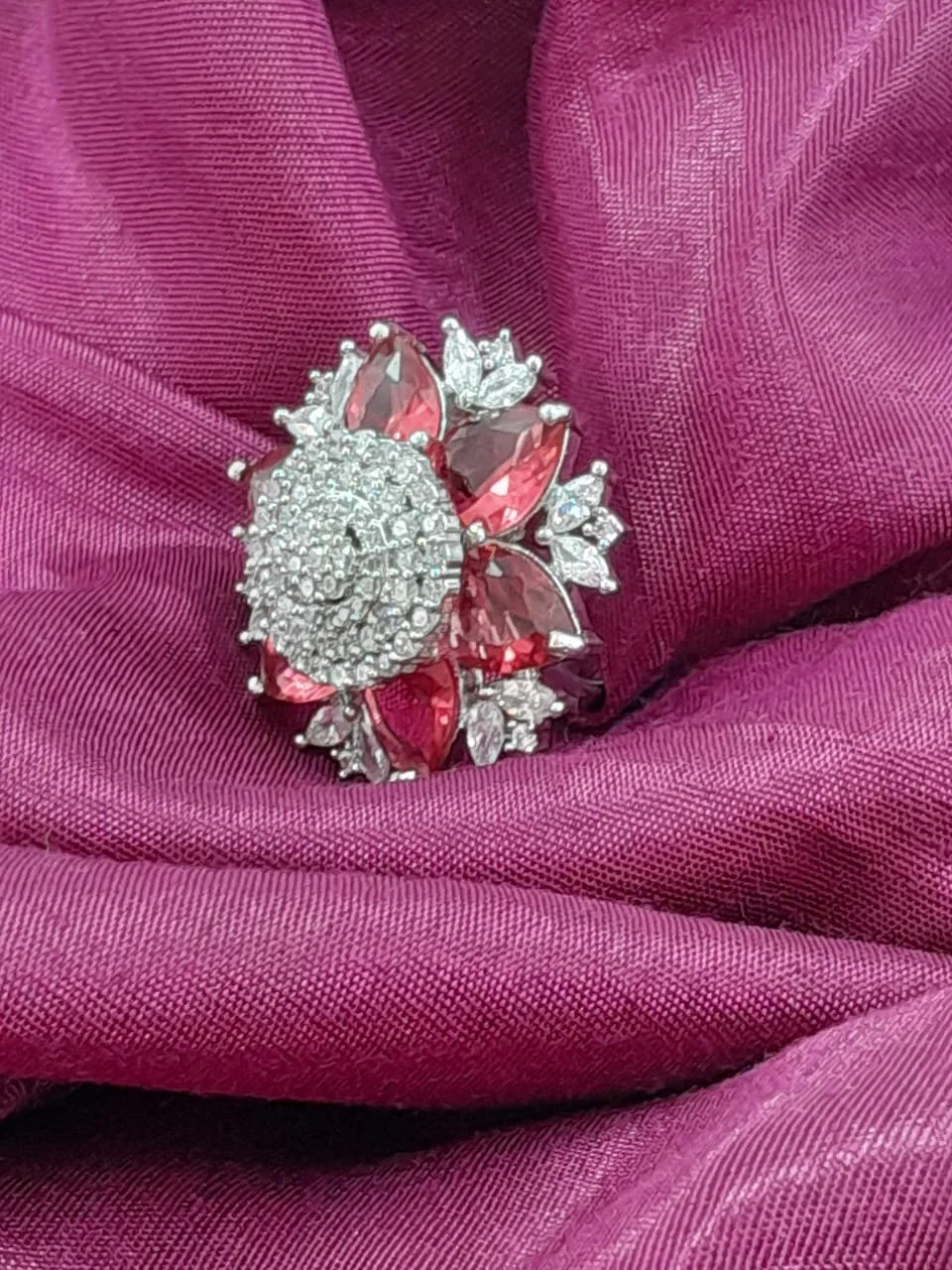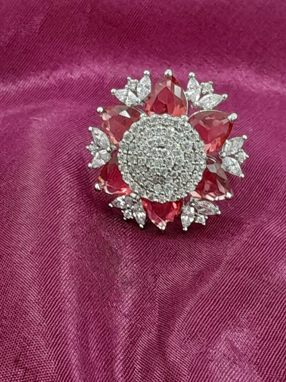 Delicate and captivating, this ring showcases a blooming flower design adorned with sparkling pink stones & diamonds. A symbol of grace and romance, it’s a stunning piece for any occasion.